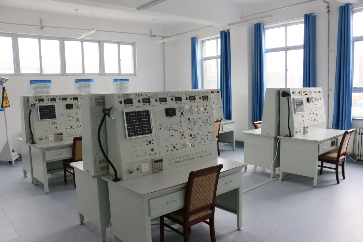 實訓(xùn)功能:本實訓(xùn)室擁有太陽能光伏發(fā)電系統(tǒng)實驗裝置8套。主要服務(wù)課程為光伏發(fā)電技術(shù)分析與應(yīng)用、光伏材料的加工與檢測等。