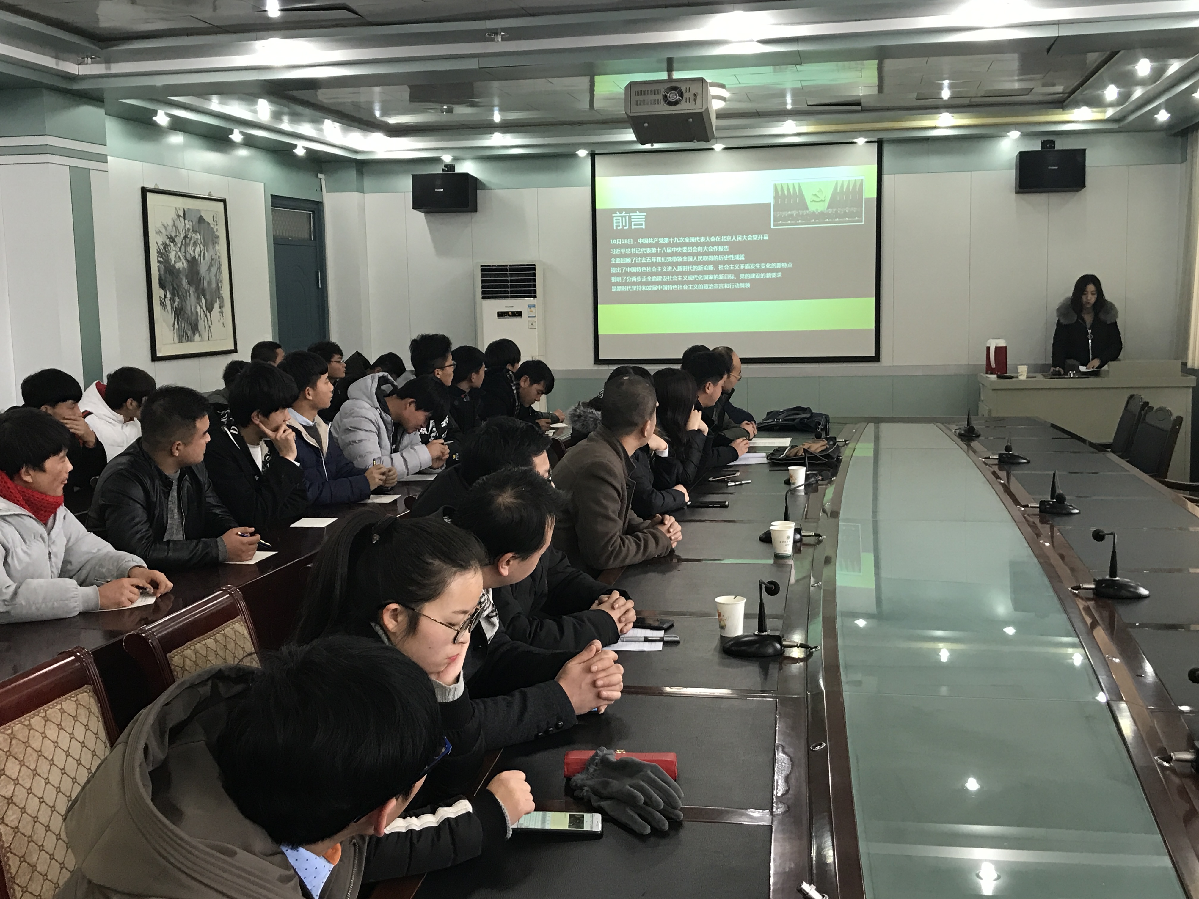 根據(jù)《中共武威職業(yè)學(xué)院委員會(huì)關(guān)于深入學(xué)習(xí)宣傳貫徹黨的十九大精神的通知》精神,1月4日下午,建筑工程系邀請(qǐng)思政教研室侯卿老師,在博學(xué)樓二樓會(huì)議室,為全系黨員、教師、入黨積極分子和團(tuán)學(xué)干部做關(guān)于學(xué)習(xí)貫徹黨的十九大精神宣講。會(huì)議由系黨總支書記聶百勝主持。