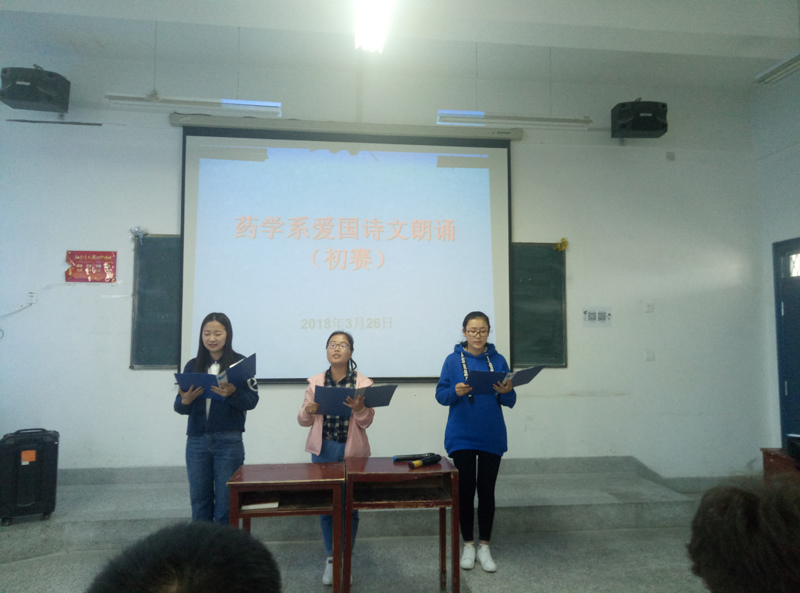 為深入學(xué)習(xí)貫徹習(xí)近平新時(shí)代中國特色社會(huì)主義思想和黨的十九大精神,鼓勵(lì)當(dāng)代大學(xué)生通過朗誦愛國詩文,感受中華經(jīng)典文化,塑造民族精神,展現(xiàn)新時(shí)期大學(xué)生精神風(fēng)貌,藥學(xué)系團(tuán)總支在系黨總支的安排和學(xué)院團(tuán)委的指導(dǎo)下,于3月26日在明遠(yuǎn)樓524教室舉辦了“我的中國夢”經(jīng)典愛國詩文朗誦比賽。藥學(xué)系16級、17級各班學(xué)生代表參加了此次朗誦比賽。