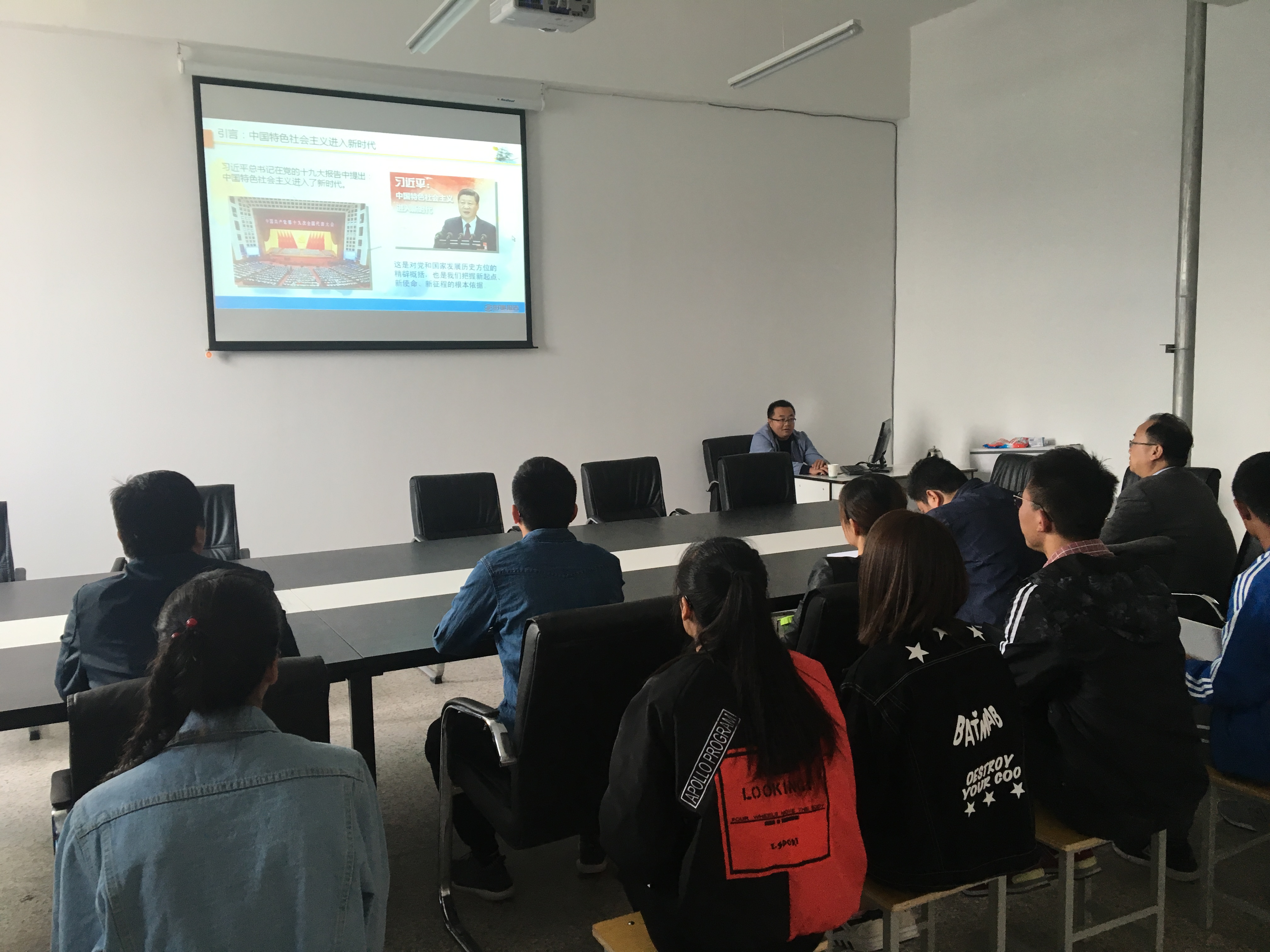 根據學院黨委《關于組織開展深入學習貫徹習近平新時代中國特色社會主義思想和黨的十九大精神主題宣講活動的通知》要求,4月3日下午,能源工程系黨總支組織開展宣講活動,邀請馬克思主義學院宣講組成員、組織人事處副處長魏全民為系黨總支全體黨員、教師和學生入黨積極分子進行習近平新時代中國特色社會主義思想和黨的十九大精神宣講。