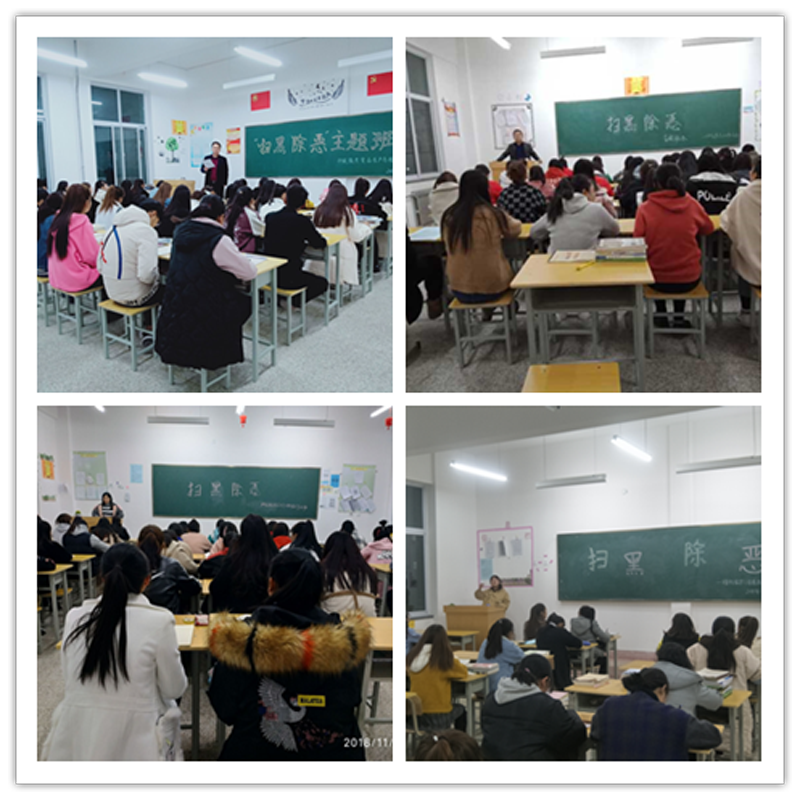 各班班主任精心準備,帶領(lǐng)學(xué)生學(xué)習(xí)“掃黑除惡”宣傳材料。重點針對“校園貸”、“老鄉(xiāng)會”、“黃賭毒”、校園欺凌和網(wǎng)絡(luò)威脅等違法犯罪行為進行深刻剖析,并提出了行之有效的防范措施,確保師生人身和財產(chǎn)安全。