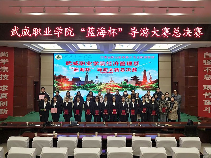 2018年12月28日,武威職業(yè)學(xué)院經(jīng)濟(jì)管理系“藍(lán)海杯“導(dǎo)游大賽決賽在大學(xué)生活動(dòng)中心“菁英廳”圓滿落幕。此次活動(dòng)是甘肅省職業(yè)教育骨干專(zhuān)業(yè)旅游管理專(zhuān)業(yè)建設(shè)活動(dòng)之一。