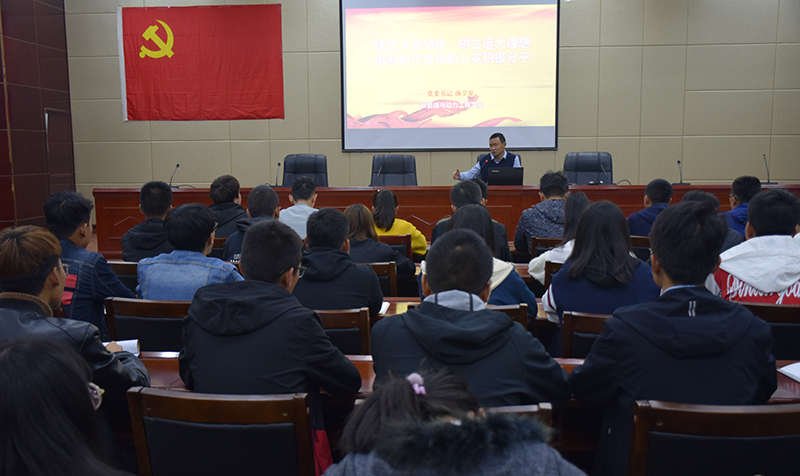 開班典禮結束后,羅小勇同志以“學習貫徹新黨章,做習近平新時代中國特色社會在主義思想的踐行者”為題講授了開班的第一課;馬天琳以“中國共產(chǎn)黨的指導思想”為題講授了第二課。當晚,學院黨委書記湯旻安同志以“端正入黨動機,樹立遠大理想,做新時代合格的入黨積極分子”為題講授了第三課。