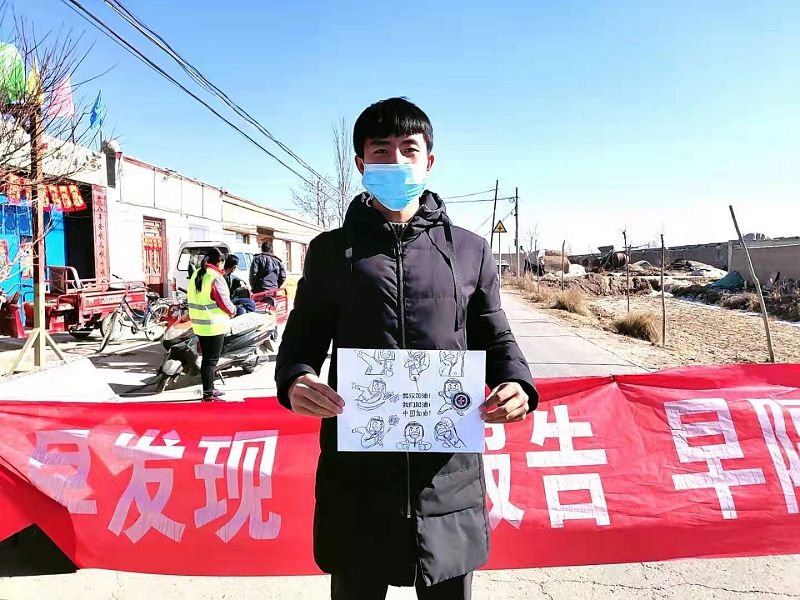 人文藝術(shù)教育系團(tuán)委副書(shū)記孫國(guó)祥,家在甘肅省定西市通渭縣平襄鎮(zhèn)中林村,在近期的防控疫情狙擊戰(zhàn)中,自愿參與到當(dāng)?shù)匾咔榉揽毓ぷ髦?,協(xié)助工作人員檢查過(guò)往車(chē)輛,并將他之前儲(chǔ)存的未拆封醫(yī)用口罩捐贈(zèng)給一起的工作人員。他表示,縱有疫情可怕似虎,亦有青年為國(guó)奉獻(xiàn)。打贏這場(chǎng)大仗、硬仗,每一個(gè)中國(guó)人都應(yīng)有防控疫情的責(zé)任,要有主動(dòng)行動(dòng)的自覺(jué)。武漢加油,中國(guó)加油!