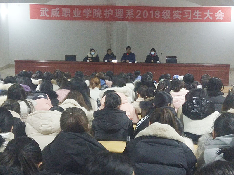 為進一步加強實習(xí)學(xué)生安全責(zé)任意識,落實2021屆畢業(yè)生創(chuàng)新創(chuàng)業(yè)、就業(yè)服務(wù)保障,12月24日晚,護理系在學(xué)院正心廳召開2018級實習(xí)生大會。護理系黨總支書記張建輝、主任韓曉萍就業(yè)指導(dǎo)教師楊珊、各班主任及2018級600多名實習(xí)學(xué)生參加了會議。會議由護理系分團委書記楊杰主持。
