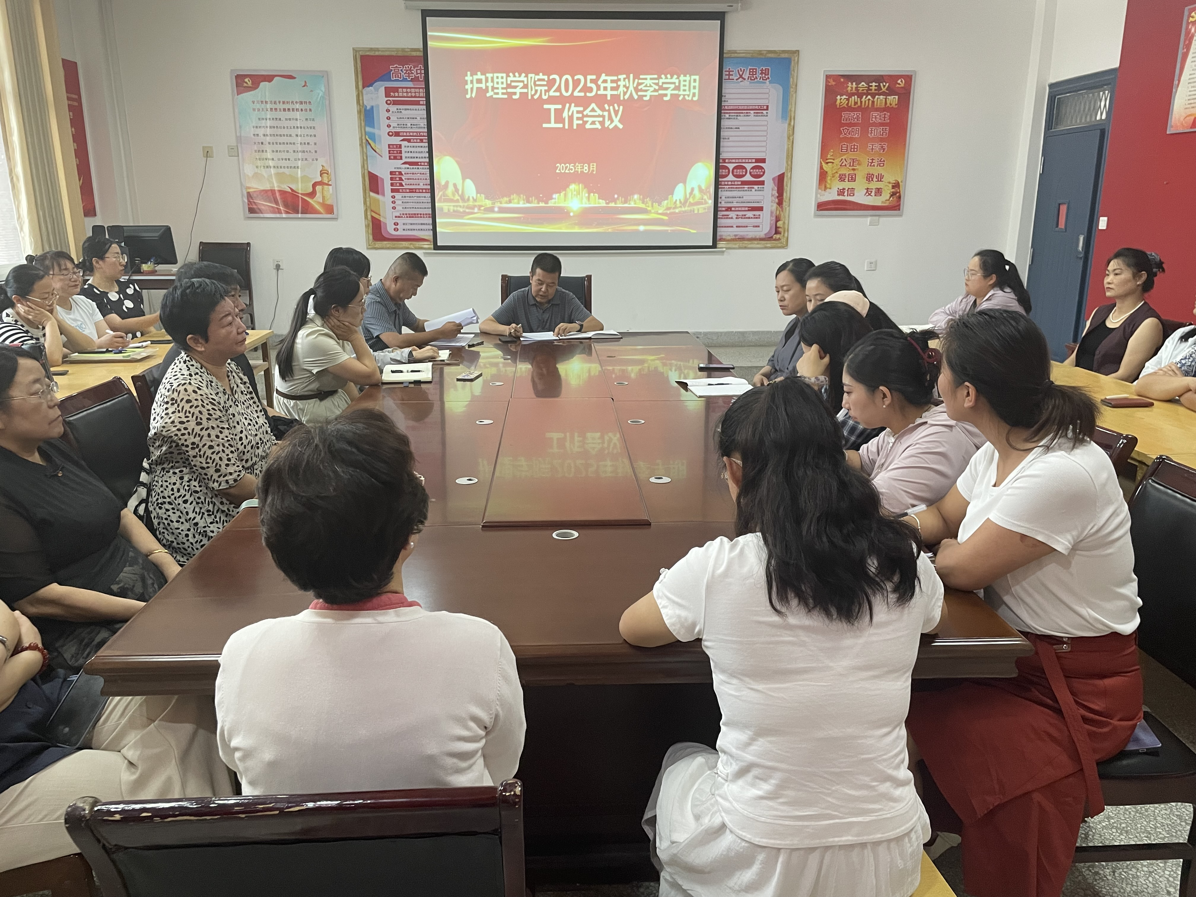 8月23日,護(hù)理學(xué)院召開(kāi)專(zhuān)題會(huì)議,傳達(dá)學(xué)習(xí)學(xué)校2025年秋季新學(xué)期工作會(huì)議精神,研究安排護(hù)理學(xué)院2025年秋季學(xué)期各項(xiàng)重點(diǎn)工作任務(wù)。學(xué)院領(lǐng)導(dǎo)班子成員、全體教職工參加會(huì)議。