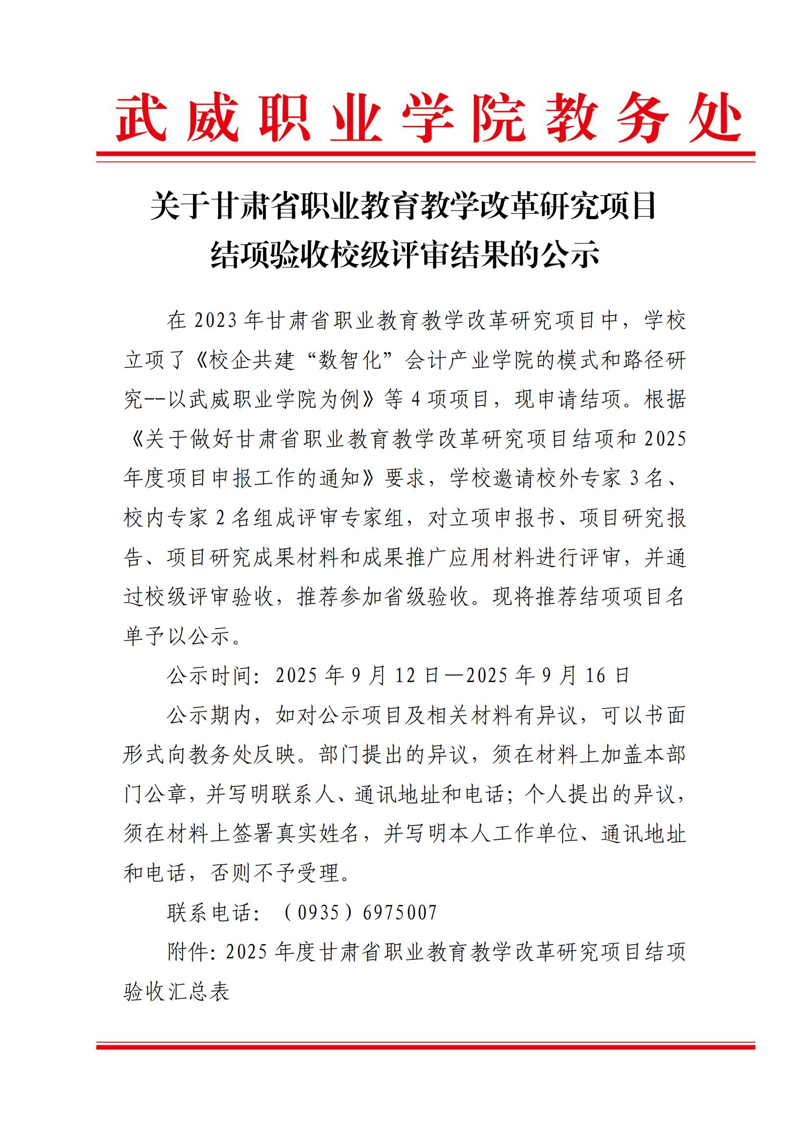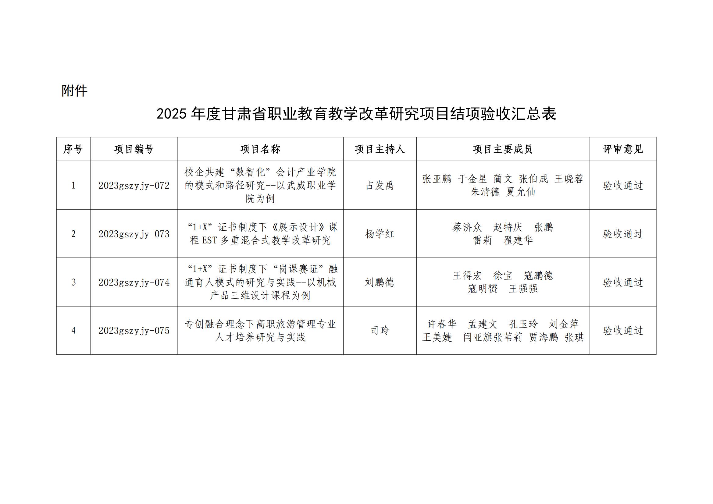 關(guān)于甘肅省職業(yè)教育教學(xué)改革研究項(xiàng)目結(jié)項(xiàng)驗(yàn)收校級評審結(jié)果的公示