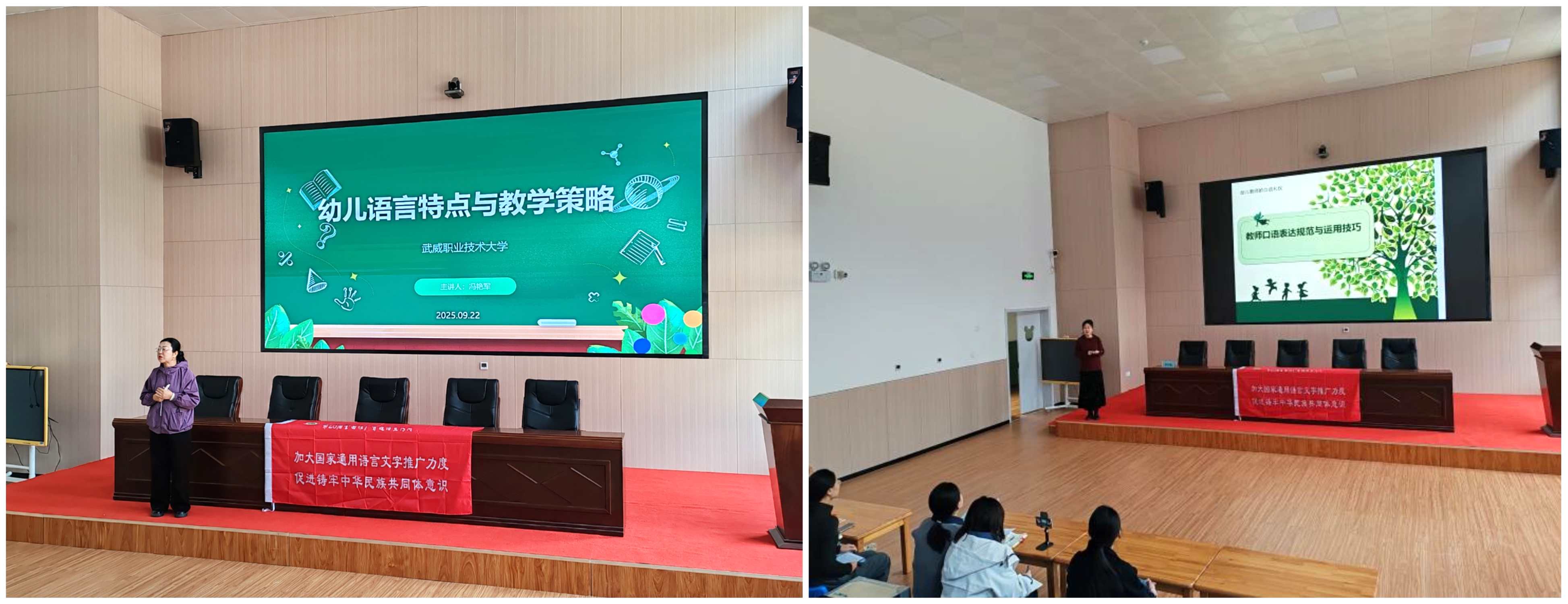 近日,武威職業(yè)技術(shù)大學(xué)推普志愿團(tuán)隊一行赴甘南州勒秀鎮(zhèn)學(xué)前教育集團(tuán)開展“童語童音”專項培訓(xùn)活動。此次培訓(xùn)以“提升教師語言素養(yǎng),夯實學(xué)前語言教育根基”為目標(biāo),為當(dāng)?shù)?1所幼兒園的20余名保教人員送去精準(zhǔn)化、實操性強(qiáng)的教學(xué)指導(dǎo),切實助力民族地區(qū)學(xué)前語言教育質(zhì)量提升。