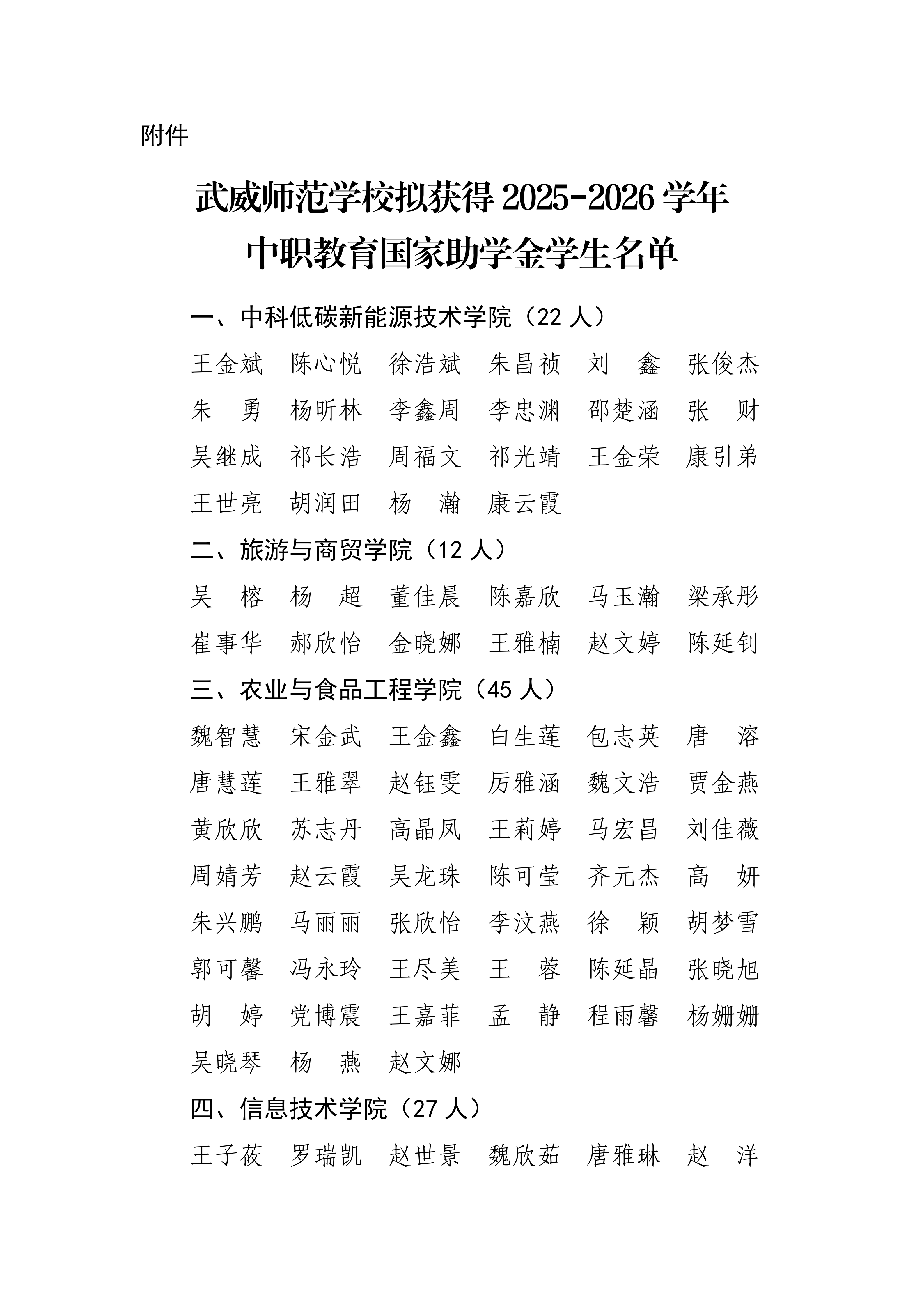 甘肅省武威師范學校關(guān)于2025-2026學年國家助學金評選結(jié)果的公示