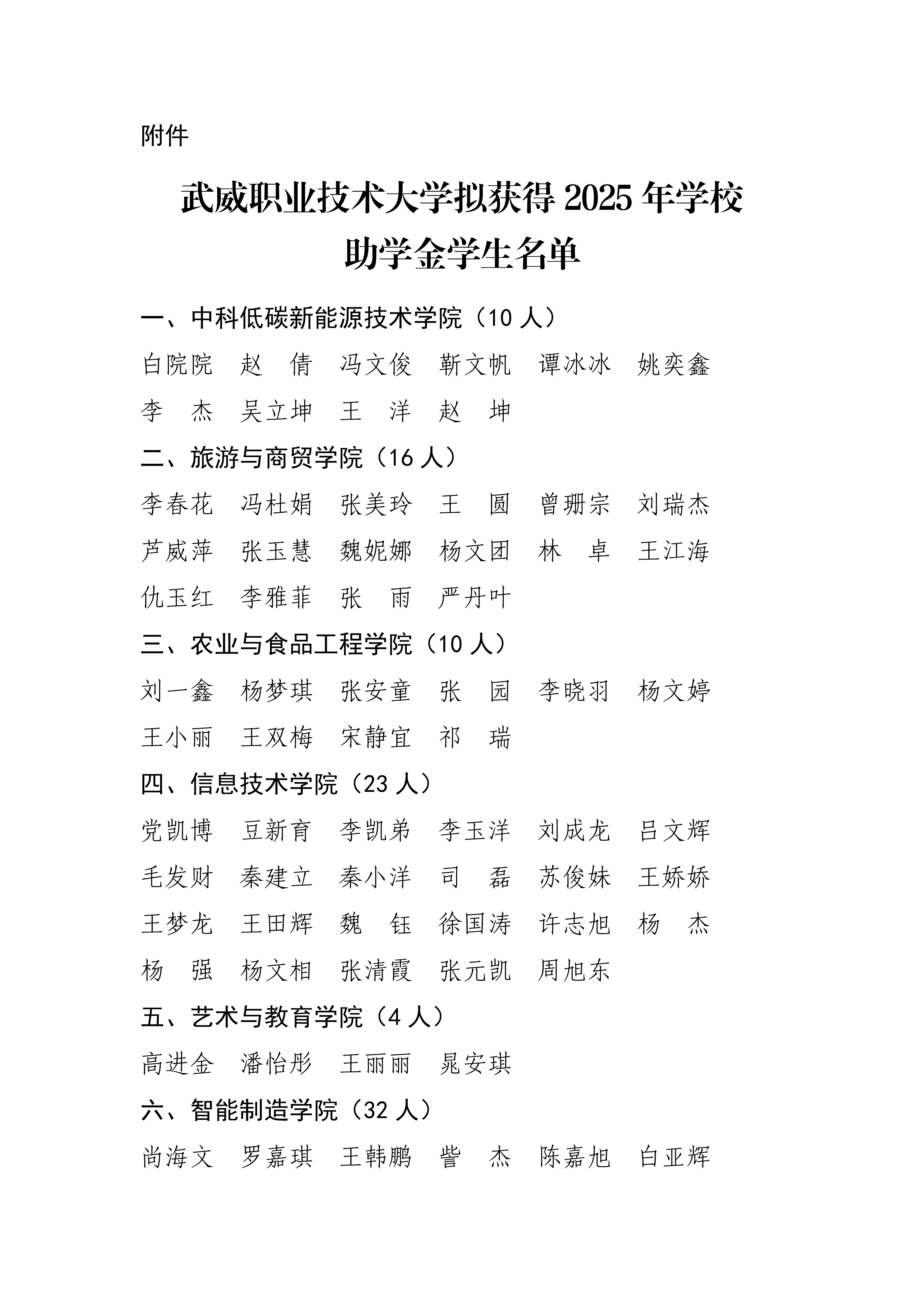 武威職業(yè)技術(shù)大學(xué)關(guān)于2025年學(xué)校助學(xué)金評選結(jié)果的公示
