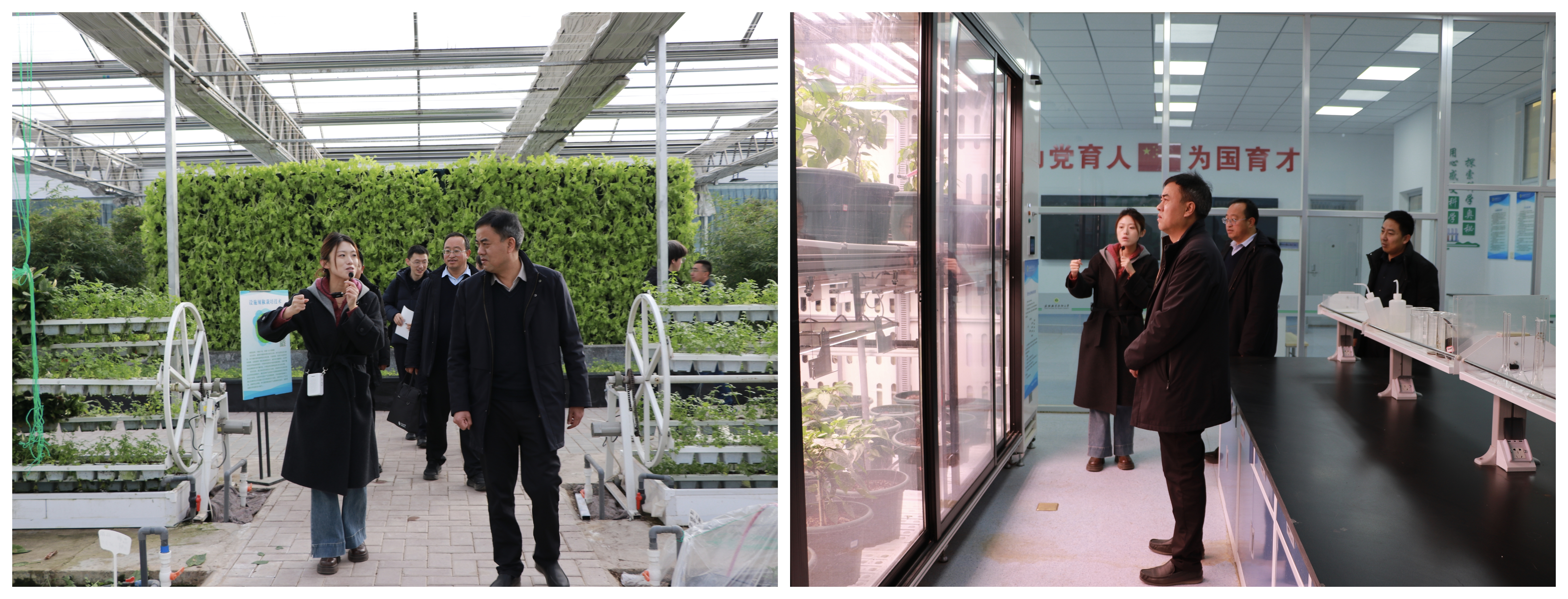 調(diào)研期間,莊浪職業(yè)教育中心一行四人先后參觀了農(nóng)產(chǎn)品質(zhì)量安全與檢測(cè)實(shí)訓(xùn)室、智慧設(shè)施農(nóng)業(yè)實(shí)訓(xùn)室、現(xiàn)代農(nóng)業(yè)生產(chǎn)性實(shí)訓(xùn)基地等多個(gè)實(shí)驗(yàn)實(shí)訓(xùn)場(chǎng)所。學(xué)院專業(yè)教師詳細(xì)介紹了各實(shí)訓(xùn)室的建設(shè)標(biāo)準(zhǔn)、設(shè)備配置、教學(xué)功能及實(shí)訓(xùn)課程開展情況,展示了學(xué)院在教育教學(xué)方面取得的成果。在現(xiàn)代農(nóng)業(yè)生產(chǎn)性實(shí)訓(xùn)基地,雙方圍繞中高職貫通培養(yǎng)、實(shí)驗(yàn)實(shí)訓(xùn)室建設(shè)等內(nèi)容深入交流,申賓德介紹了學(xué)院專業(yè)特色、課程體系、師資隊(duì)伍及學(xué)生升學(xué)就業(yè)等方面的內(nèi)容。王瑾楠結(jié)合本校專業(yè)辦學(xué)實(shí)際,交流了在貫通培養(yǎng)過程中遇到的課程銜接、人才培養(yǎng)標(biāo)準(zhǔn)等問題。