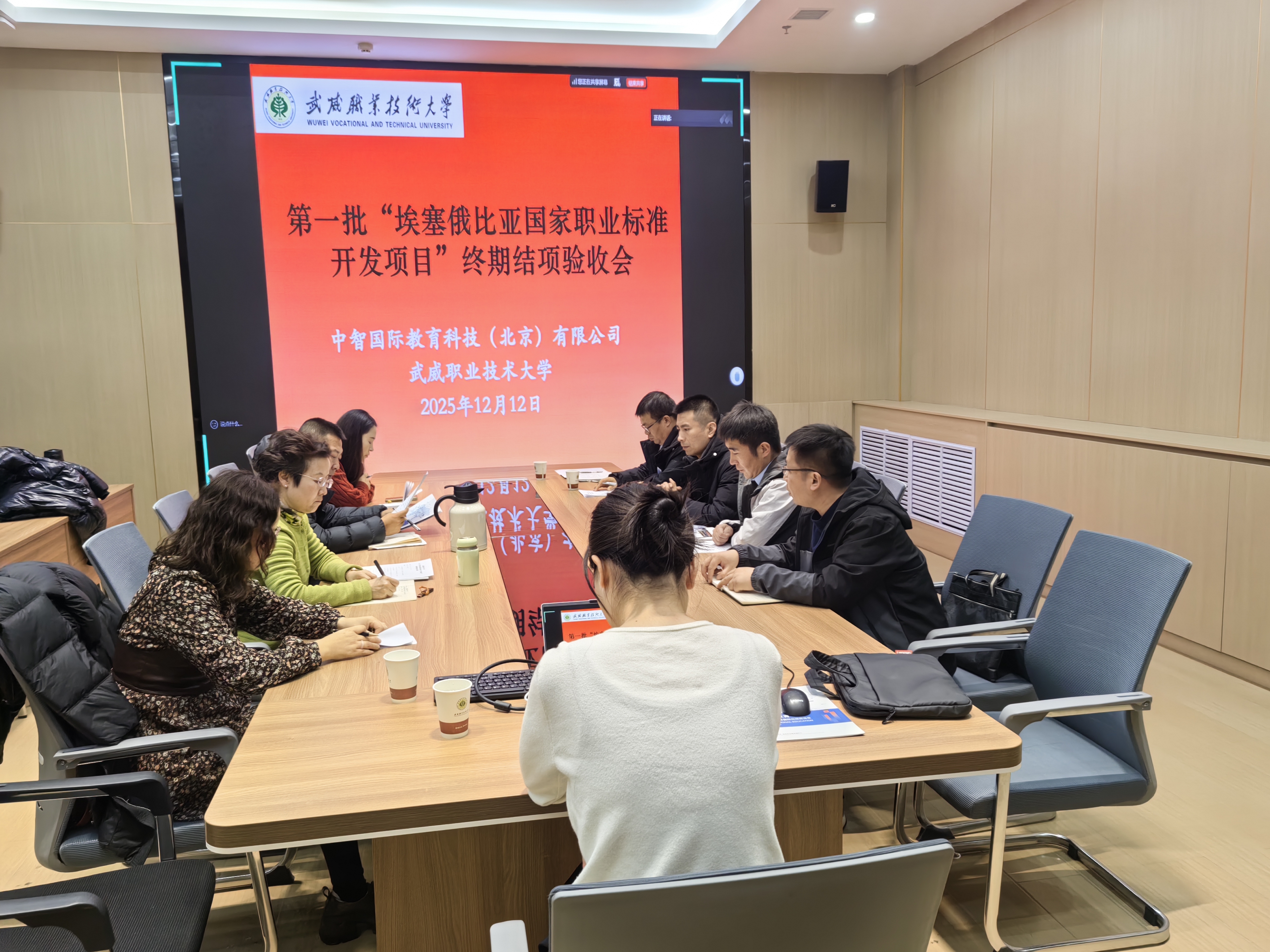 12月12日,學校召開第一批“埃塞俄比亞國家職業(yè)標準開發(fā)項目”終期驗收論證會。中智國際教育科技(北京)有限公司業(yè)務(wù)代表王鈺鈺,學校國際合作交流處、智能制造學院、護理學院相關(guān)人員參加會議。國際合作交流處副處長蔡濟眾主持論證會。