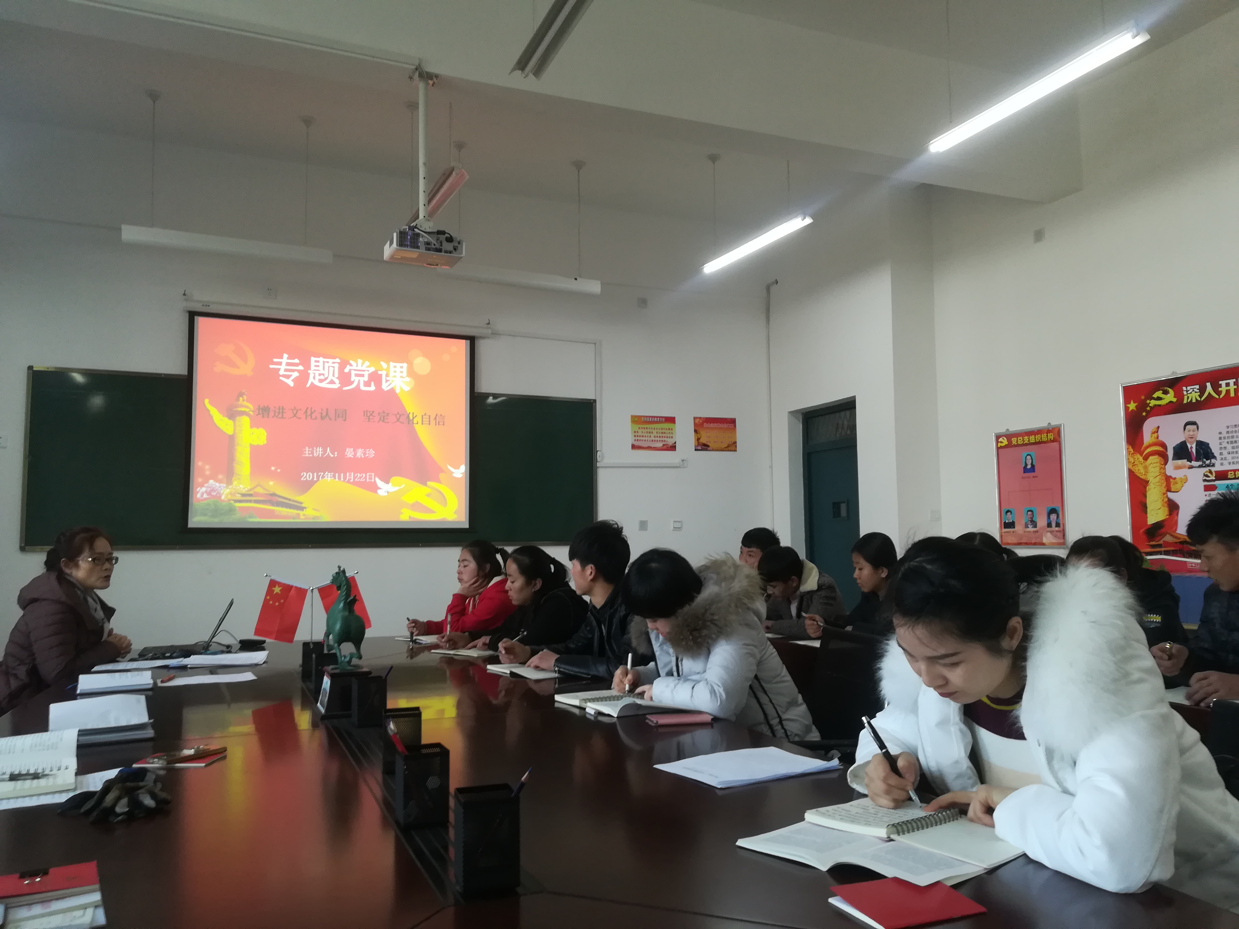此次黨課后,全體黨員紛紛表示,文化是民族的血脈,是人民的精神家園。把握好文化認(rèn)同與文化自信的內(nèi)在關(guān)系,不斷增進(jìn)文化認(rèn)同、堅(jiān)定文化自信,對(duì)于我們深刻領(lǐng)會(huì)黨中央治國(guó)理政新理念新思想新戰(zhàn)略,不斷提升對(duì)“四個(gè)自信”的理解認(rèn)識(shí),全面建設(shè)社會(huì)主義文化強(qiáng)國(guó),具有十分重要的意義。(供稿:現(xiàn)代農(nóng)業(yè)技術(shù)系? 審核:晏素珍? 撰稿:蔡海 圖片:蔡海)